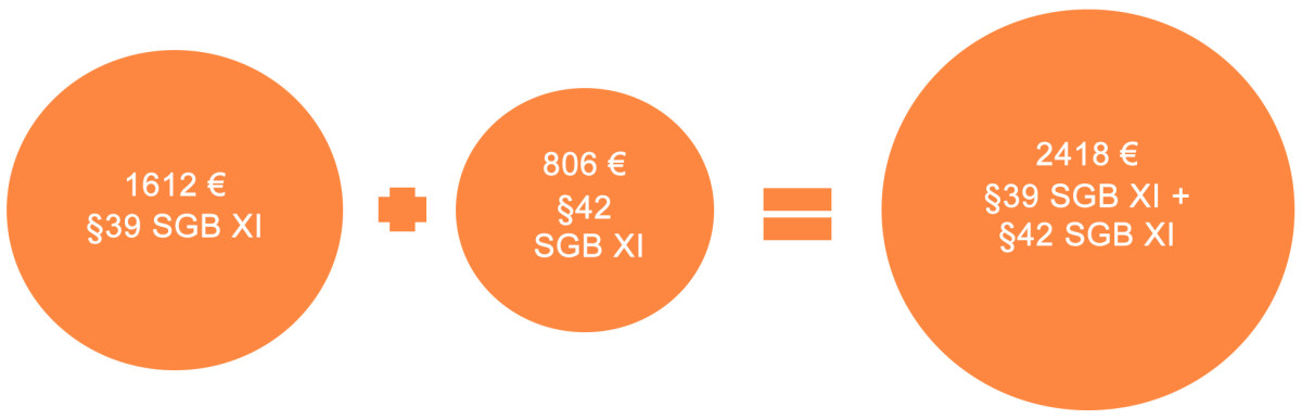 Die Pflegeversicherung übernimmt seit dem 01.01.2015 einen Betrag in Höhe von 1.612,00 Euro. Zusätzlich können im ausgewählten Jahr weitere 806,00 Euro aus dem Budget der Grundlage nach §42 SGB XI übernommen werden. Der Gesamtbetrag der Ihnen oder Ihrem Angehörigen jährlich für die Verhinderungspflege zur Verfügung steht, beläuft sich somit auf insgesamt auf 2.418,00 Euro.“